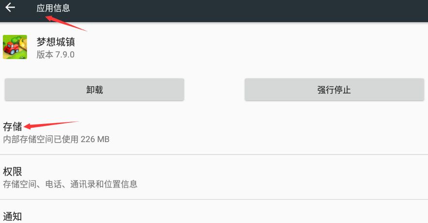 2、在手机的“设置”功能里找到“应用程序”(或者应用)→选择“梦想城镇”→点击“清除全部数据”。