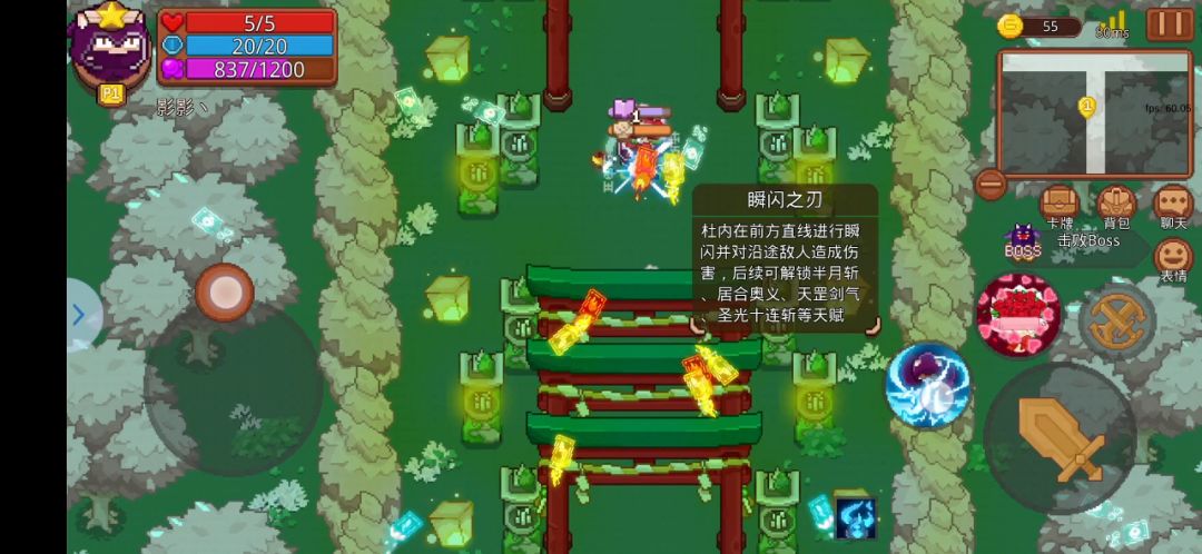 再者融炎之翼攻击范围大,冲刺距离远,含穿透性,配合杜内闪击技能在释放技能时控制好方向,一个技能就能清完房间里的所有敌人,甚至可以清另一个房间里的敌人,前提是邻近且你要跟着鸟跑过去让敌人出现。