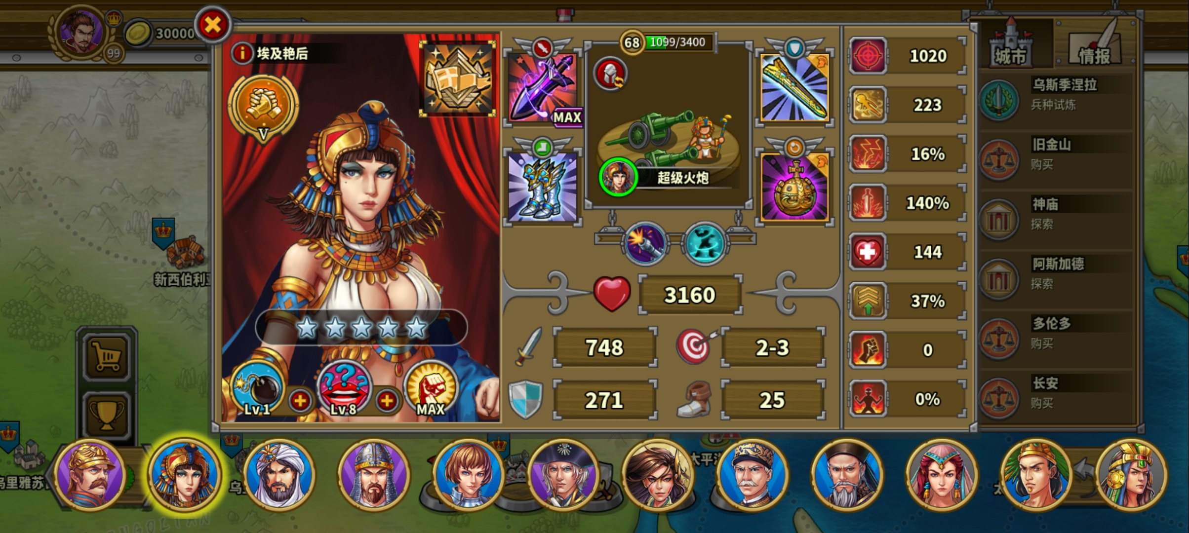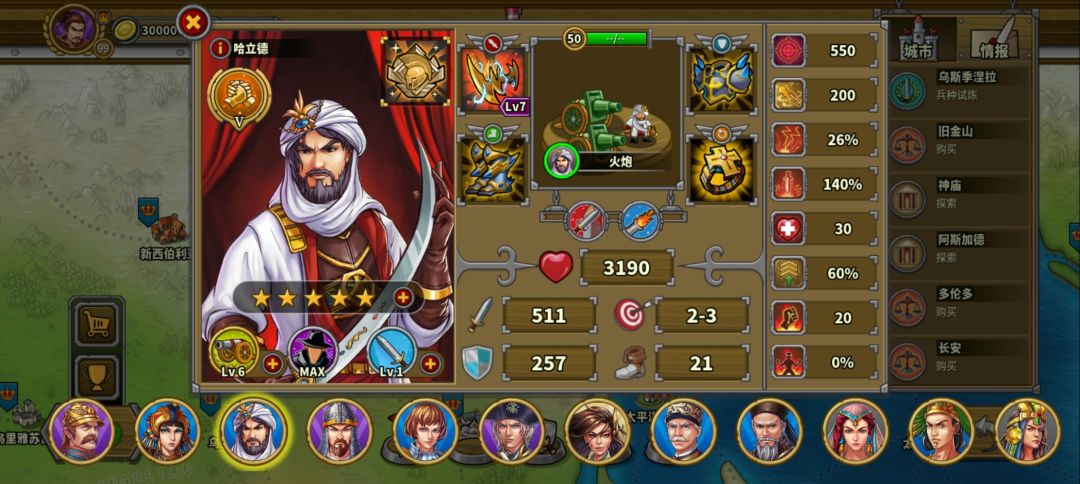不过目前炮5、6、7都还没能三星,这几关最起码得把哈立德炮指点满,哥伦布升到6星星才能三星过。
