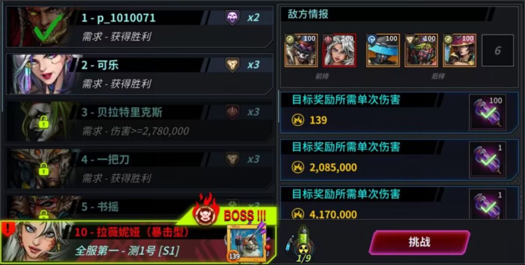 全服排行:根据最终试炼的所有服务器的历史最高伤害排行