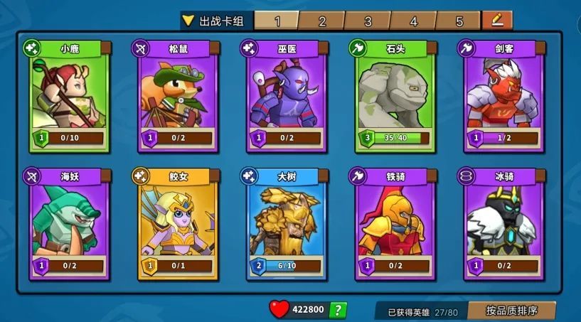 2、前期先开四个格子放核心卡,后面如刷出鲛女较多就慢开格子,把经济放在升级英雄上面