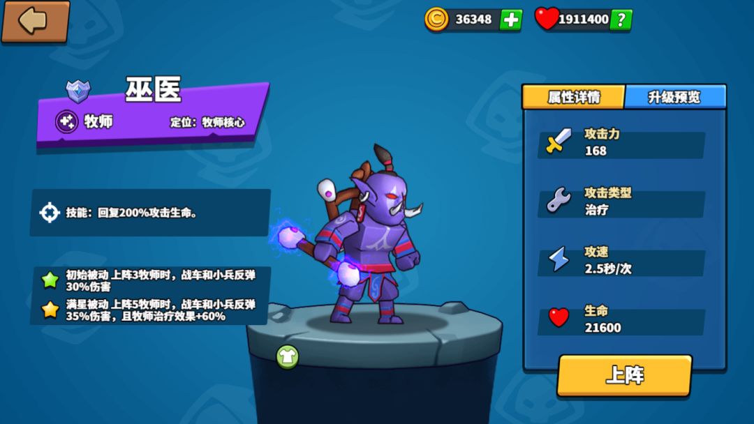 阵容组成:小鹿、松鼠、巫医、石头、剑客、海妖、鲛女、大树、铁骑、冰骑