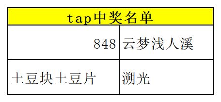 本期活动的中奖名单为:
