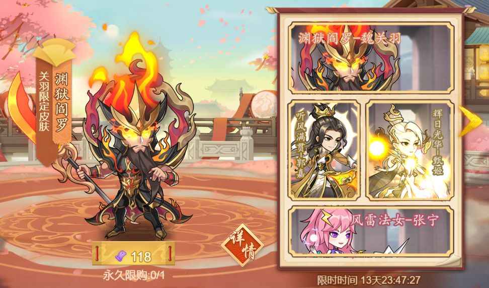 活动内容:关羽、郭嘉、甄姬、张宁限定皮肤商城热卖!