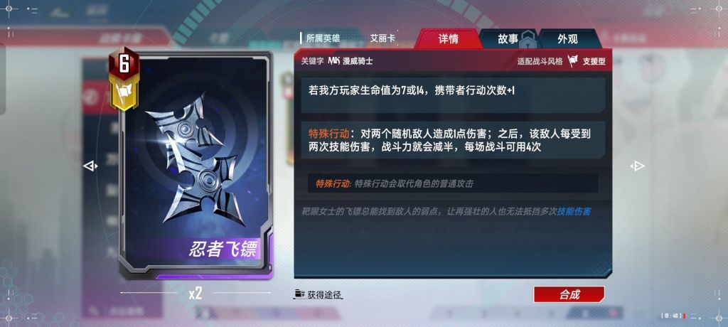 *如果选到英雄责任,搭配并肩,可以把靶眼翻到8星,得到永久8星靶眼。翻8星后,升6本再打出,可以快速收集到飞镖,武器卡多了卖钱,遇到并肩继续回手可以再赚8张武器卡(注意兼顾控血)。