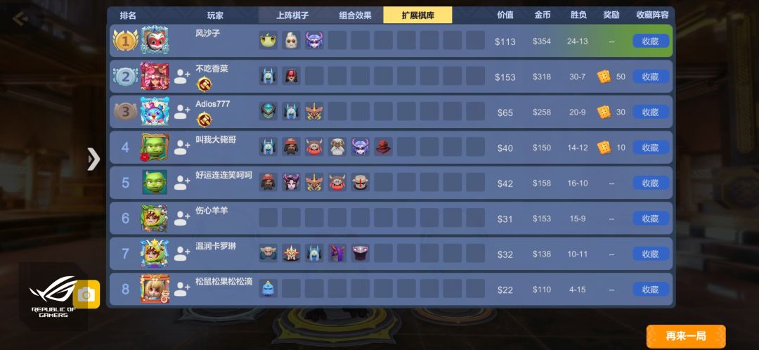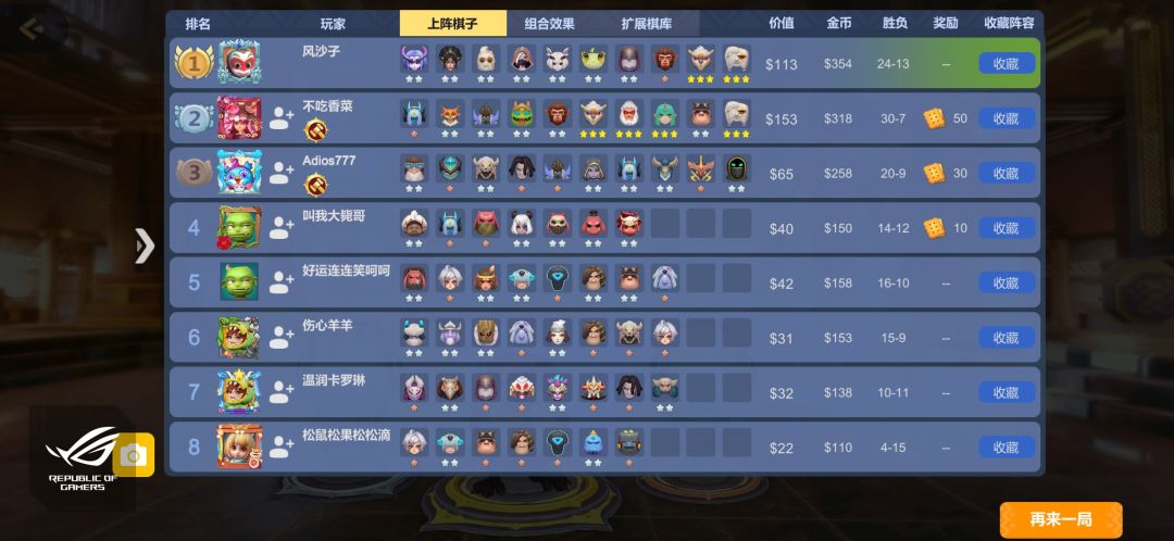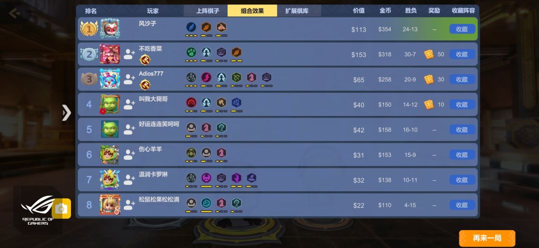 结论:不是t1阵容,可能娱乐性更高些,上分不是很稳定,上图的这把21波我是野兽光羽八人口,到最后1血翻盘,出师未捷的情况比较大,但是玩得开心