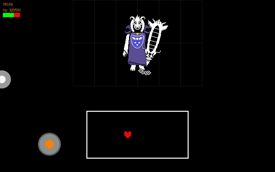 话一说完,便是一段排山倒海的开头杀,对话框突然出现占据一半的骨头,一不小心就会掉血如流,接下来是一段类似于赛车弯道式的骨头,我们需要操控决心在细小的缝隙中躲避骨头攻击,然后就是几门龙骨炮的疯狂攻击,可以分为“十字型”“X型”“一字型”,必须得躲在对话框极少的安全区域内才能躲避攻击。