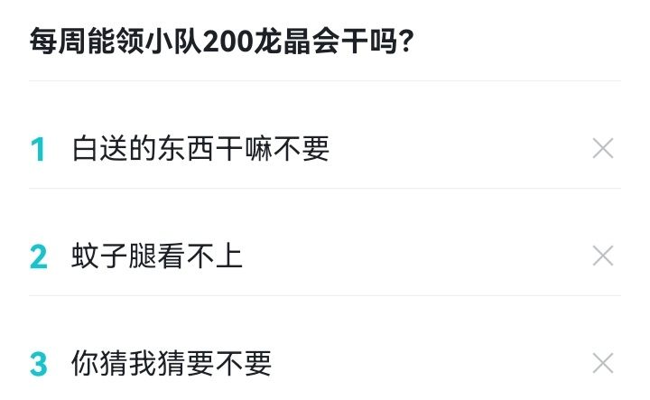 每周能领小队200龙晶会干吗? (单选)