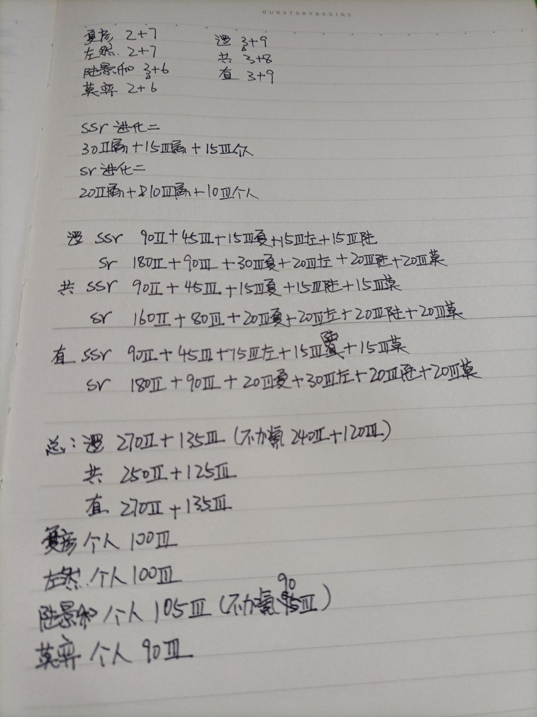 由于r卡是只能进化一次的 所以只需要统计ssr和sr的进化材料就可以了