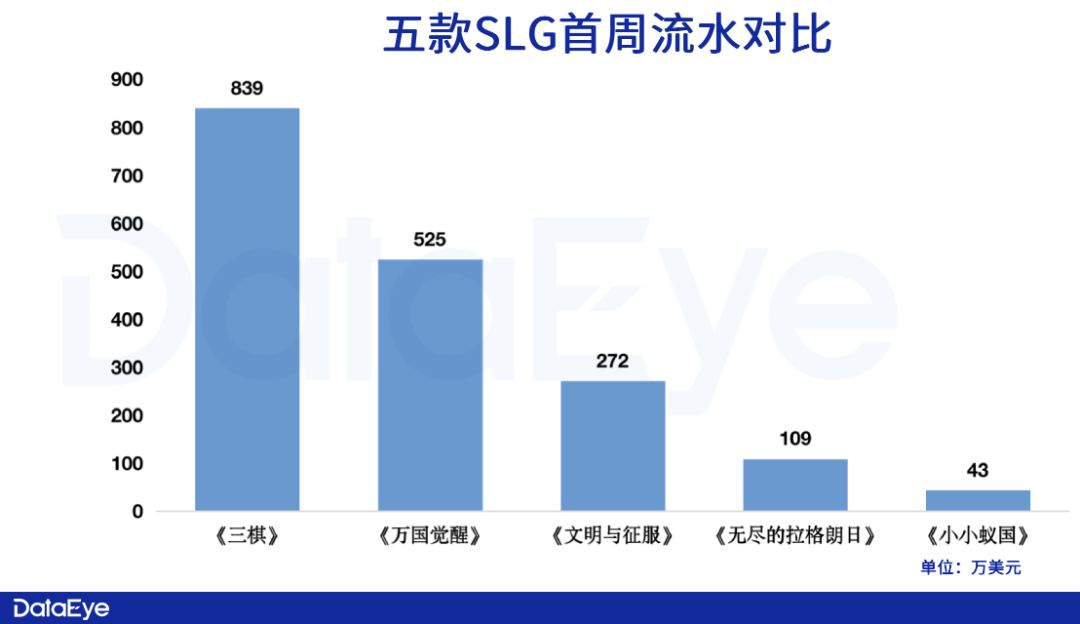 从成绩来看,点点数据显示,《三棋》连续7天单iOS渠道日流水破百万美元,首周流水达到839万美元,对比近两年上线的SLG新品,成绩相对突出。