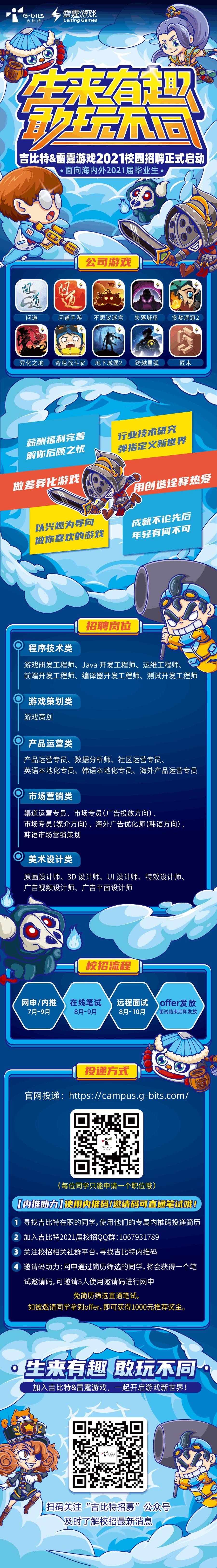 吉比特&雷霆游戏2021年校园招聘正式启动啦!