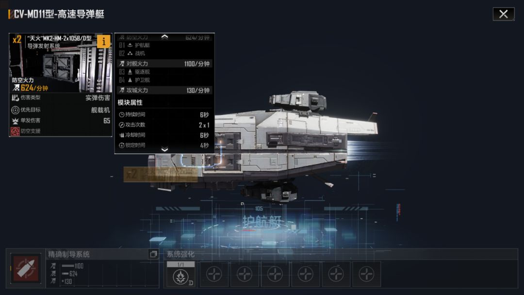 来看主武器系统,单发伤害65,DPM624,防空种类为全场防空援助(和林鸮一样)打完空军之后攻击序列优先驱逐舰后护卫舰,这都没有问题,但眼尖的小伙伴可能发现了,高速型的防空武器没有防空特种弹药词条,连佩刀这种主对舰的战机都加了防空特种弹药,专门防空的却没有,属实是有点逆天,不知道是不是忘记加了。
