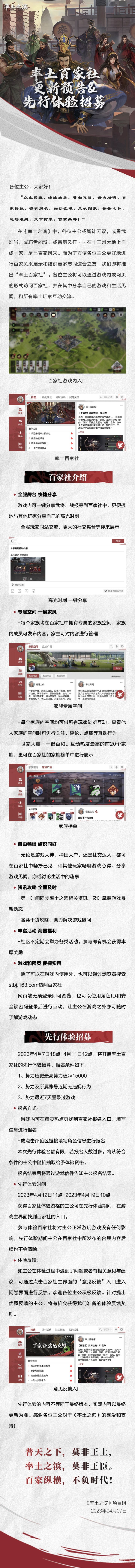 《率土之滨》率土百家社更新预告&先行体验招募