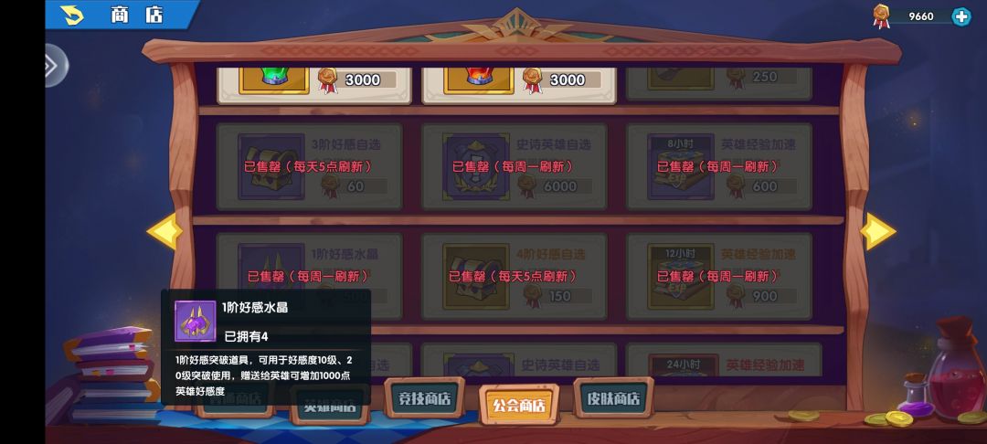 公会商店产出大量的礼物自选箱子3级好感自选和4级好感自选,还有1级好感水晶,两种好感自选都是每日五点刷新,水晶一周一刷新,必买。进入区第一公会基本都能买的了,如果不是那就看你取舍了。