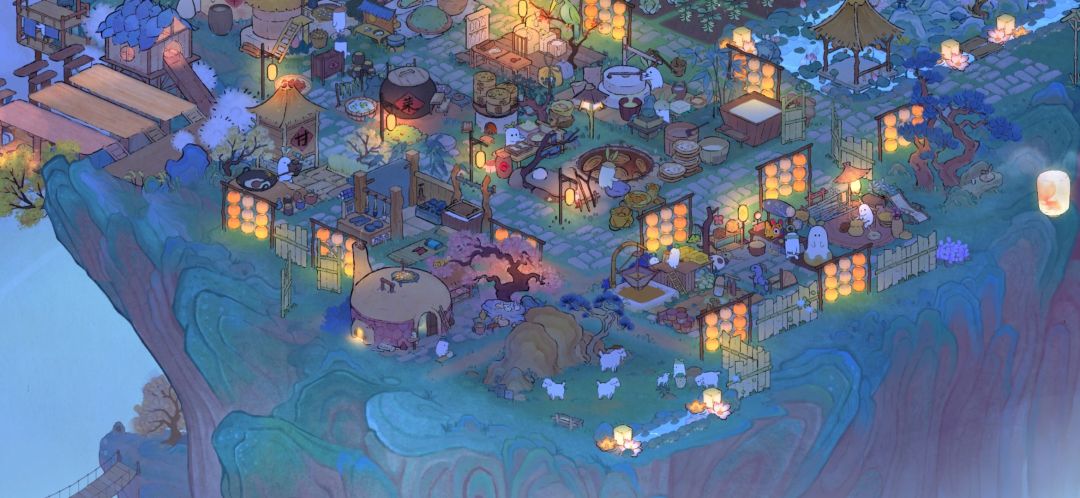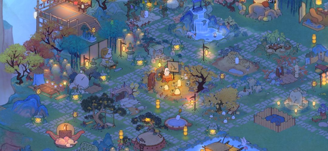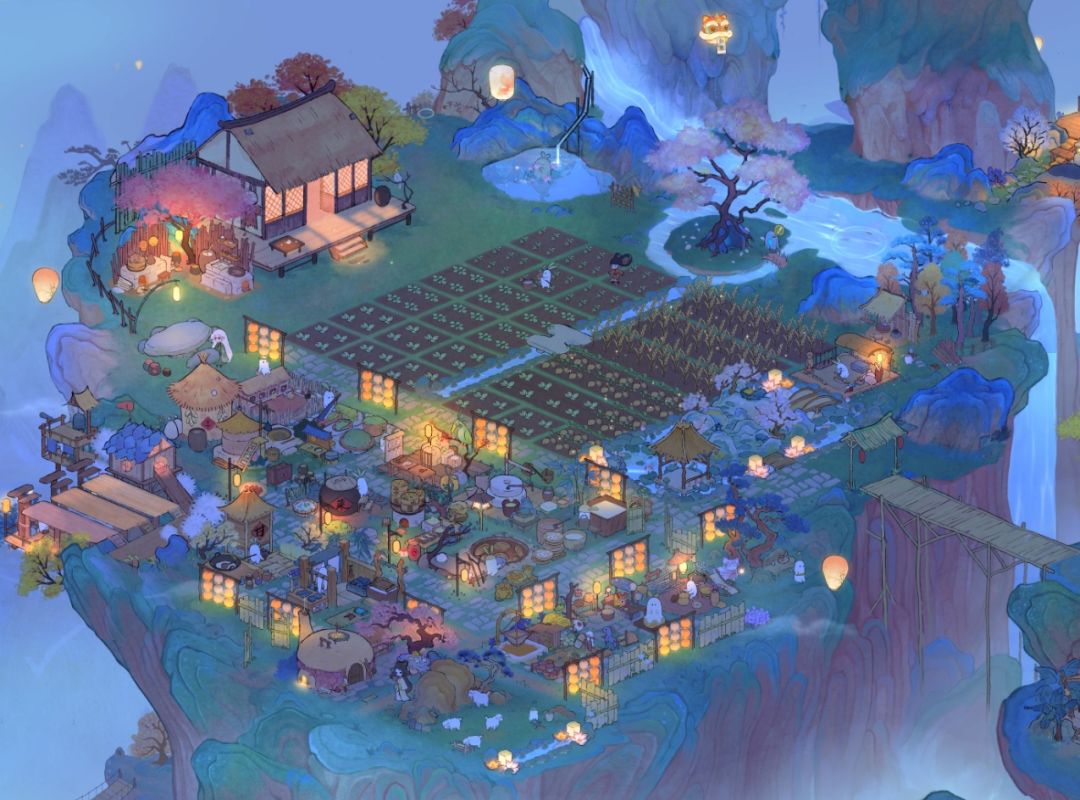 生产区 错落有致的灯光与农家石板路