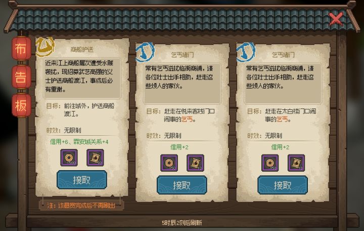 版本更新后,在不同场景布告板中将刷新符合该场景特征的悬赏任务,过去版本中存在的重复枯燥的部分任务在新版本交付后将不会刷新,转而由新任务替代。