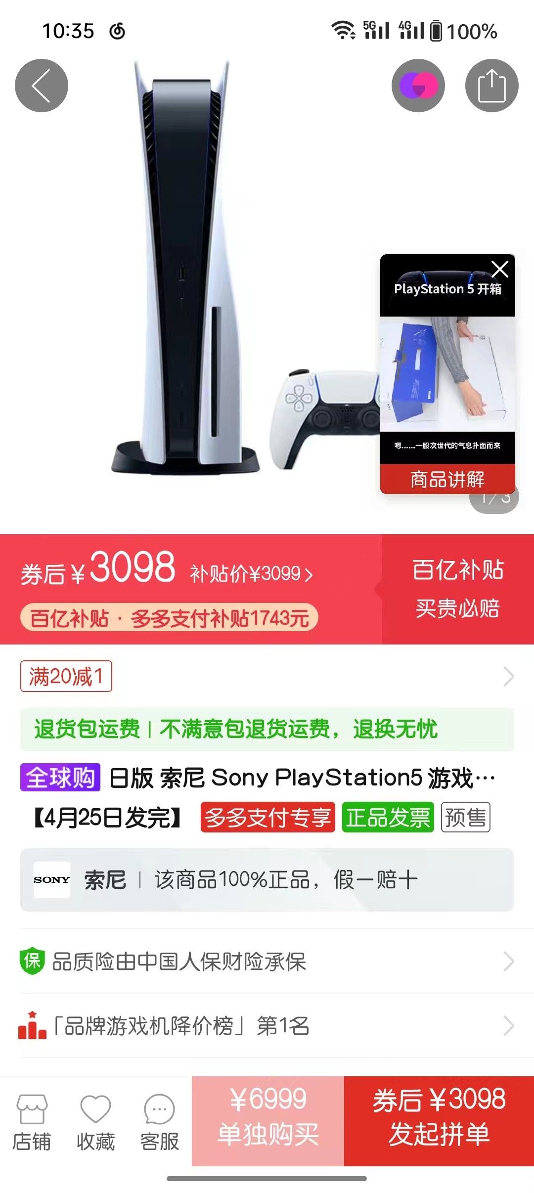 拼多多百亿补贴PS5光驱版日版迎来好价,补贴价来到了3099元,券后可达3098元。如果想要入手的玩家不妨趁此机会。
