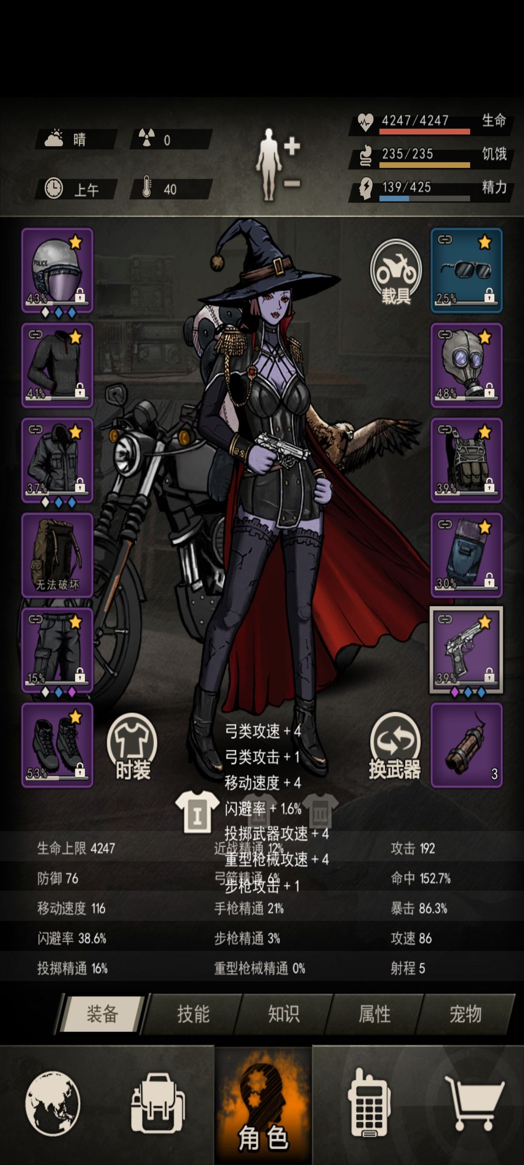 技能9枪斗9爆头9闪8高;配件422,反应3-9瑜伽3-8;m9满攻击差5攻速;宠物ss雕5助战;丧猎4级,尼奥6级,药后闪避38.6,
