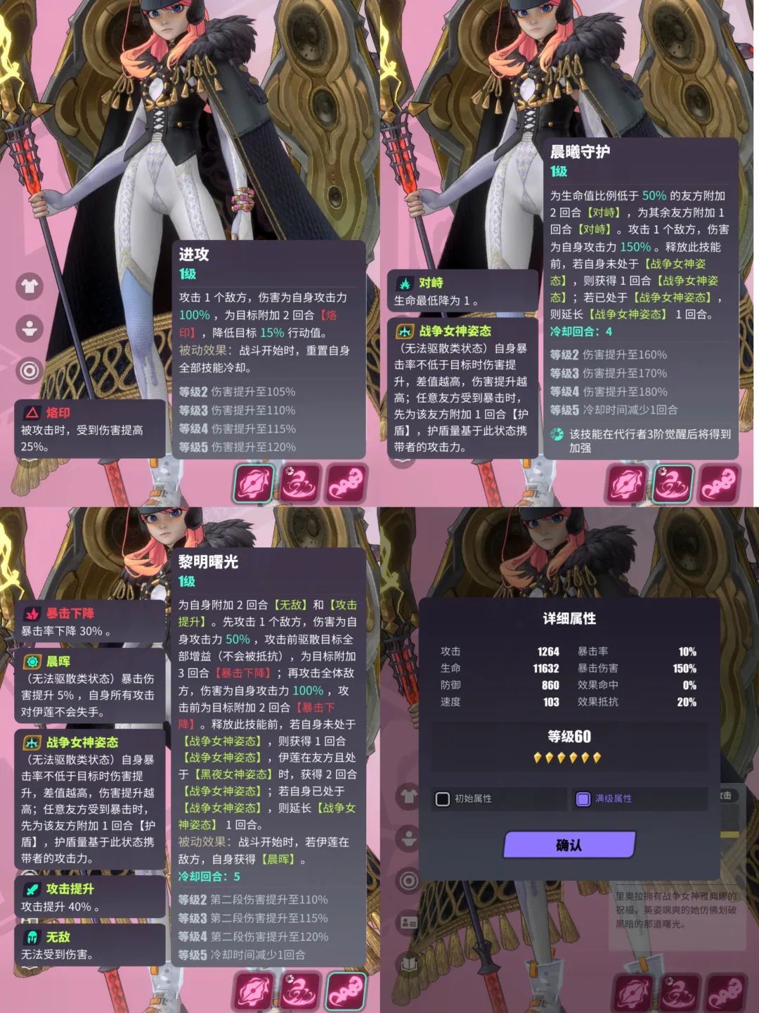 全环境30%的全队攻击队长,定位属于涌动输出,其技能特性抛开纯C定位更偏向于类似天使一类的辅C,其技能主打的一个围绕生存能力展开的无敌,护盾,对峙,但是PVP环境如今BUFF遍地,驱散对策大家手上或多或少都有,雅典娜更像是一个来面对新手向的低命适配克洛诺斯对策,烙印提供增伤,队友对峙自身无敌,能抗能打,很符合新手信物硬件不足不能速杀克洛诺斯的对战环境,体验下来保护还是很舒服的。