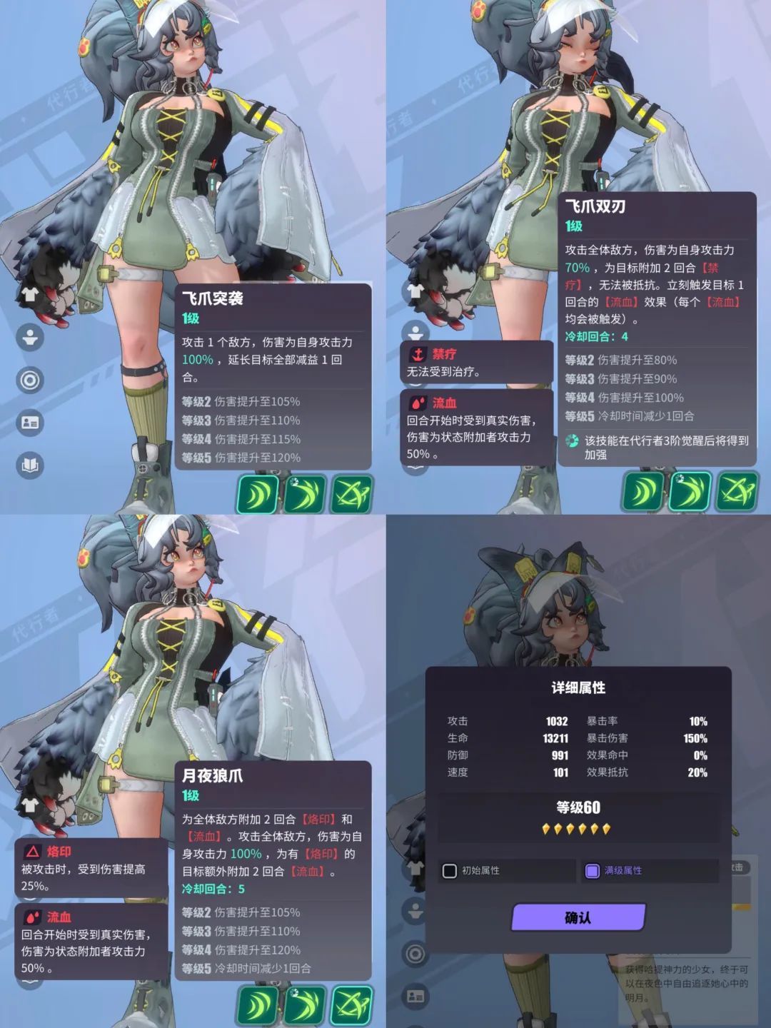 主线爬塔40%攻击队长,小狼流血增伤控制(第一个有血爆机制的角色),但她是个AOE纯C,觉醒S2带眩晕,因为其免费获得,且人人都可以融合满命,那么默认大家都有六命效果,你的S3AOE再动接S2AOE倍率120%+100%+烙印25%+流血100%(真伤)+眩晕。你的下一个宙斯,何必是涌动属性?