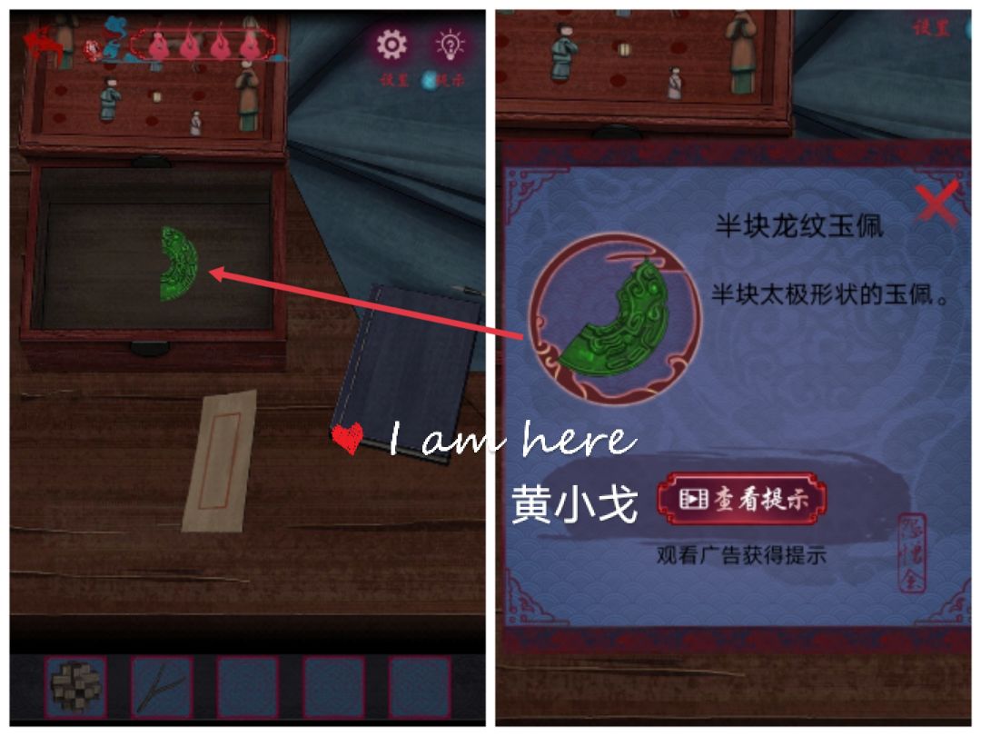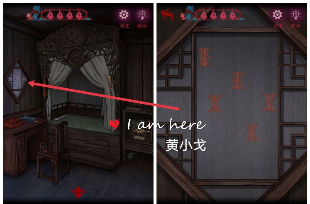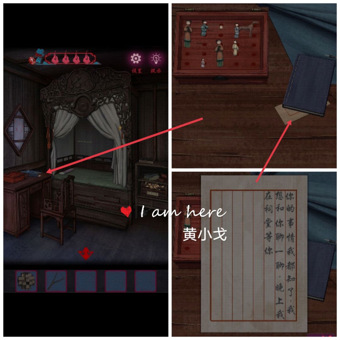 4.点击女纸童旁边的高脚凳,根据挽联上的线索,调整机关上的字为:凄、年、水、恨