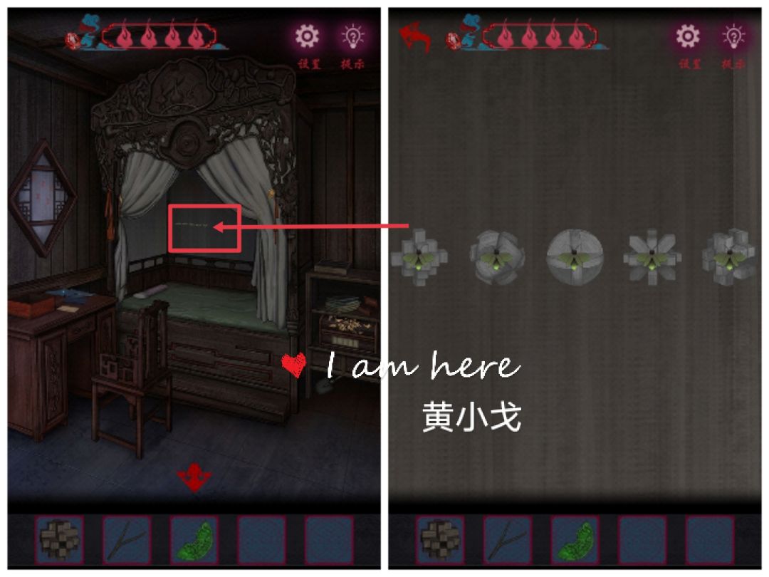 14.点击箱子,结合蚊帐上的信息和孔明锁盒上的信息,调整至正确的孔明锁图案