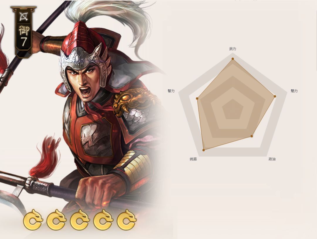 目前太史慈作为七御物理输出核,三围虽然不是最顶尖那批,但数值可以算第一梯队,还要略好于同为物理输出核的庞德。