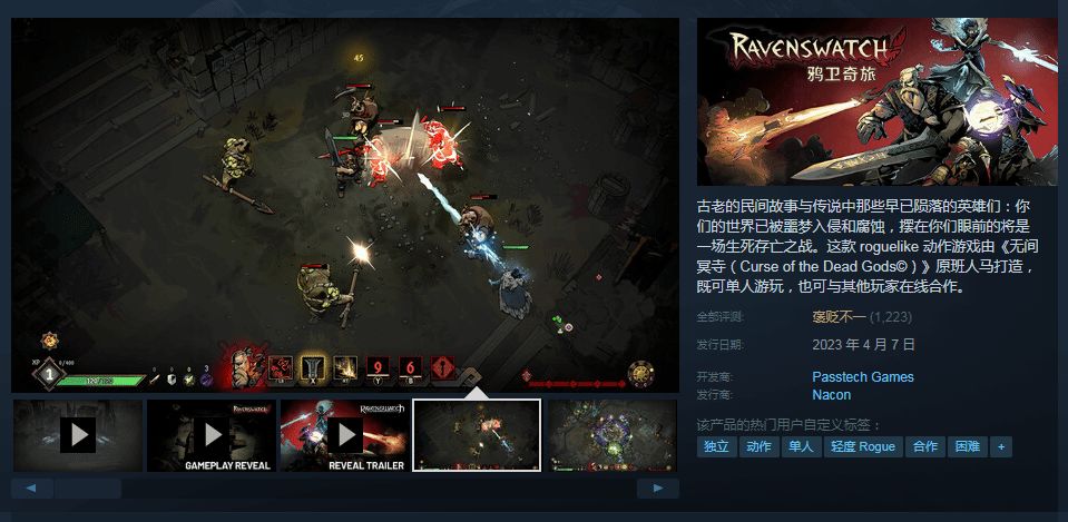 肉鸽游戏《鸦卫奇旅》发售后因其过短的流程保守诟病,Steam评价褒贬不一,好评率仅为64%(1223)。然而这款游戏的人气却并没有想象中的那么差。