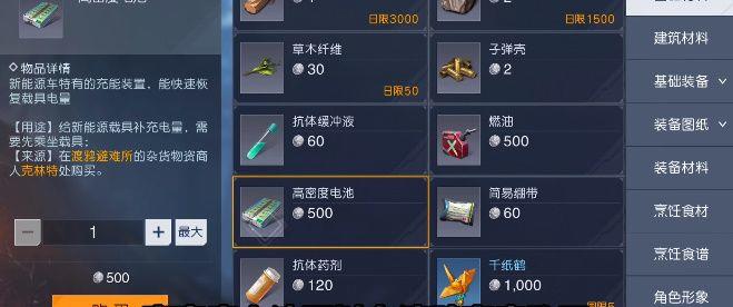 害!!!换了车不知道咋充电。之前都是在渡鸦商店买燃油。也没注意其他的。电马充电也是一样的在渡鸦商店买高密电池。跟燃油是一个价都是500银币。
