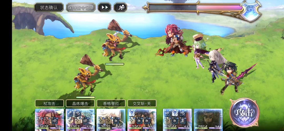 3,各角色使用蓝耗较低的aoe技能,并有技能回蓝(我第一次接触猫游是茶壶卡池那个时间段,那个时候我就是这种清道)下面不太好演示差不多就这样,基本随进度每个人用个aoe还是能清掉的