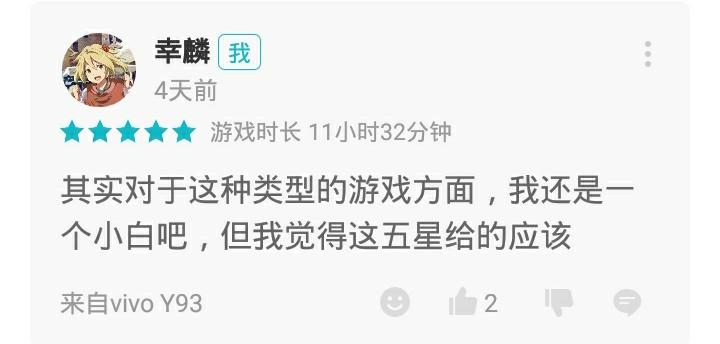 我只是一个不会说话的理科生而已,对于评论这种事情,我一向不擅长,但我仍然想做,我不认为给自己喜欢的作品评价是一件不好的事情,可是对于这种自己完全不了解的领域做出一个中肯和有理有据的评论,对我来说真的好难,我不知道在与它同类型的游戏里,它究竟是排在哪一个位置,不清楚它是否可以拿到5星的高分,我不知道,也不清楚,我只是一个小白。所以按照自己的想法给了五星也许我不能像那些大佬一样,用华美的语言将自己的心意传达出去,但我和那些用心评论的大佬们对于这游戏的喜爱应该是一样。。。