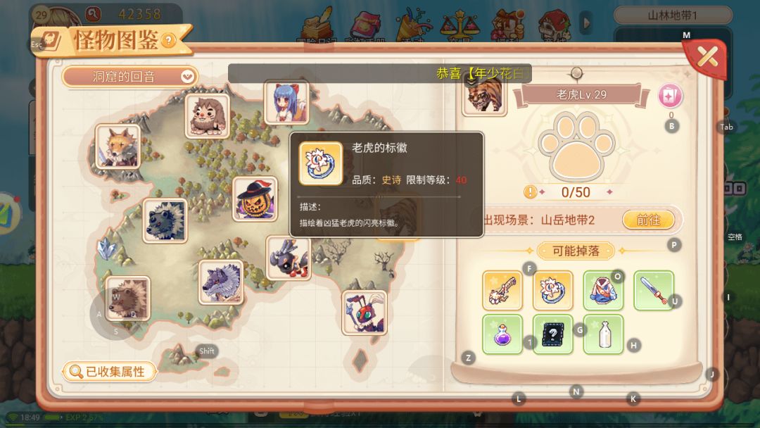 前期首饰是比较罕见的装备,所以能爆戒指的老虎也是个不错的挂机刷装备选择,一个老虎戒指能增加6000多的战力,非常值得一刷。