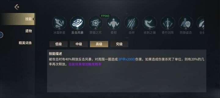 防御系英雄,必备的被动技能,一个会心,一个反击风暴比超级防御好多了,反击风暴触发会暴击,过度前期,以及未出荆棘情况下能安稳通关。宝石一套黄,两蓝三紫加防加绩效,有荆棘可全蓝。