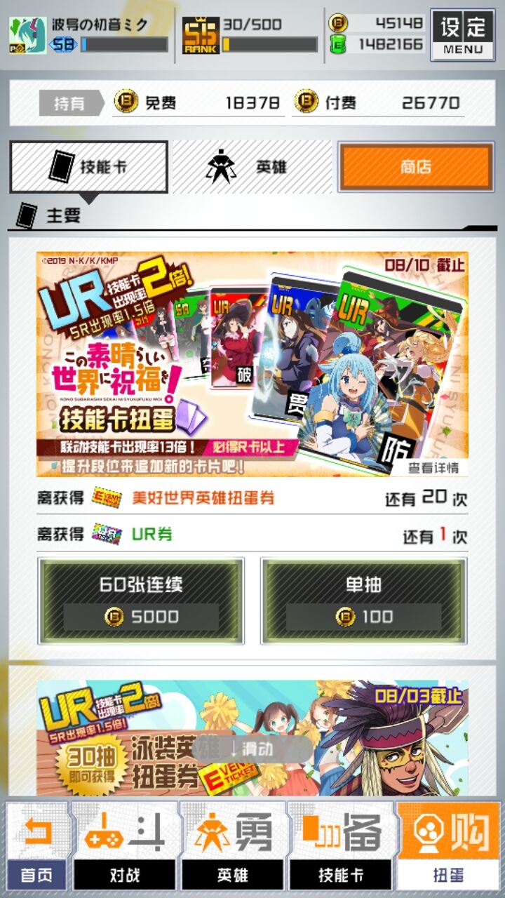 没水烟花毒叔搁置。惠惠倒是不是很感冒,就算得到也不会用。不过不用归不用啊,空那么一个强迫症有点受不了