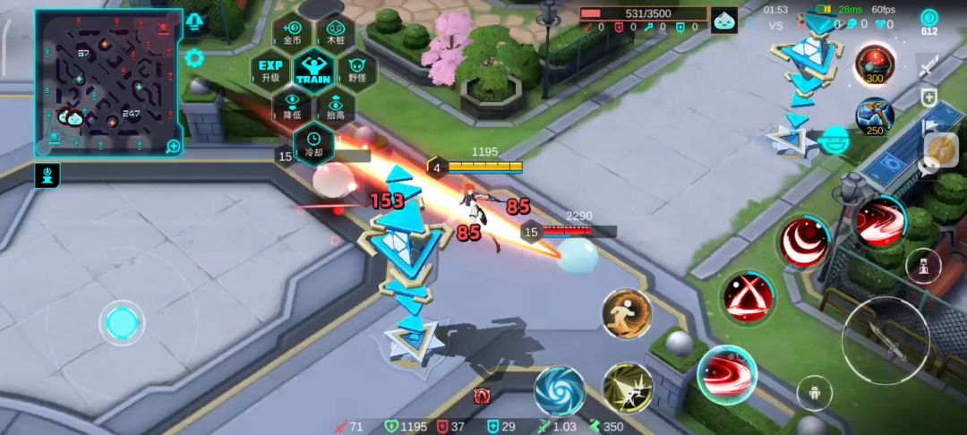 条件为,2技能施法过程中受到模型阻挡(包括有墙壁,野怪,塔,敌方英雄等)。此时这个二技能原理就变得不一样了。二技能变成类似于天叶雨大招这种效果,成为脱手技能。可以看到,未发生模型碰撞,二技能在施法中无法使用金身。发生模型碰撞后可直接使用金身且不影响该技能伤害与击飞效果。