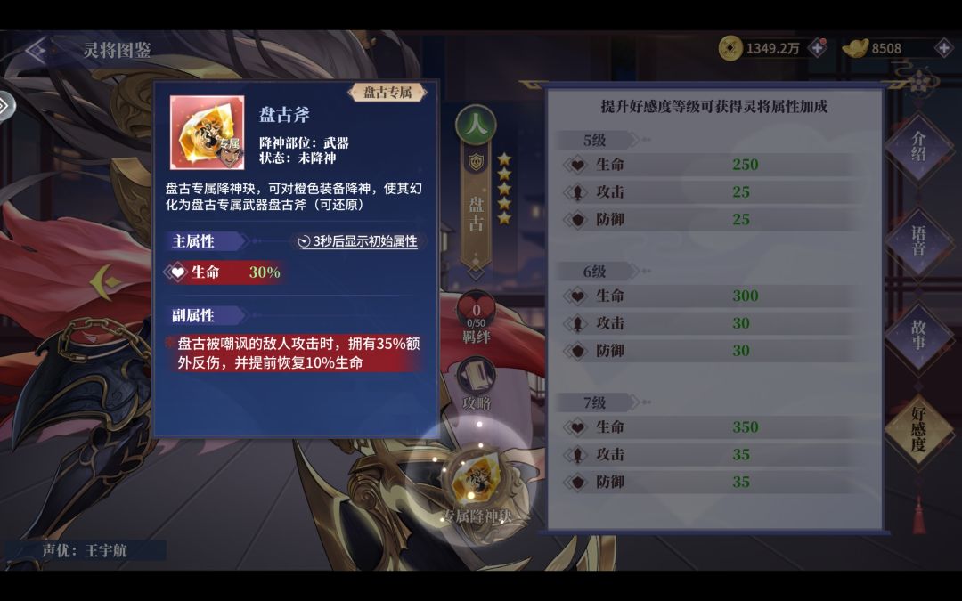 盘古的降神能够在盘古被嘲讽的敌人攻击时,额外拥有35%的免伤,且额外恢复10%的生命,算是和其属性相当契合,盘古对其降神的依赖很大,没有的话容易抗不过第一轮。
