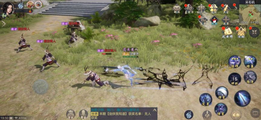 武功:上清无极剑,近身多段连续伤害技能,最后一击伤害最高,冷却时间10秒,伤害比七星剑法要高,并且施展过程中会有跳跃动作,特殊招式可以麻痹敌人。