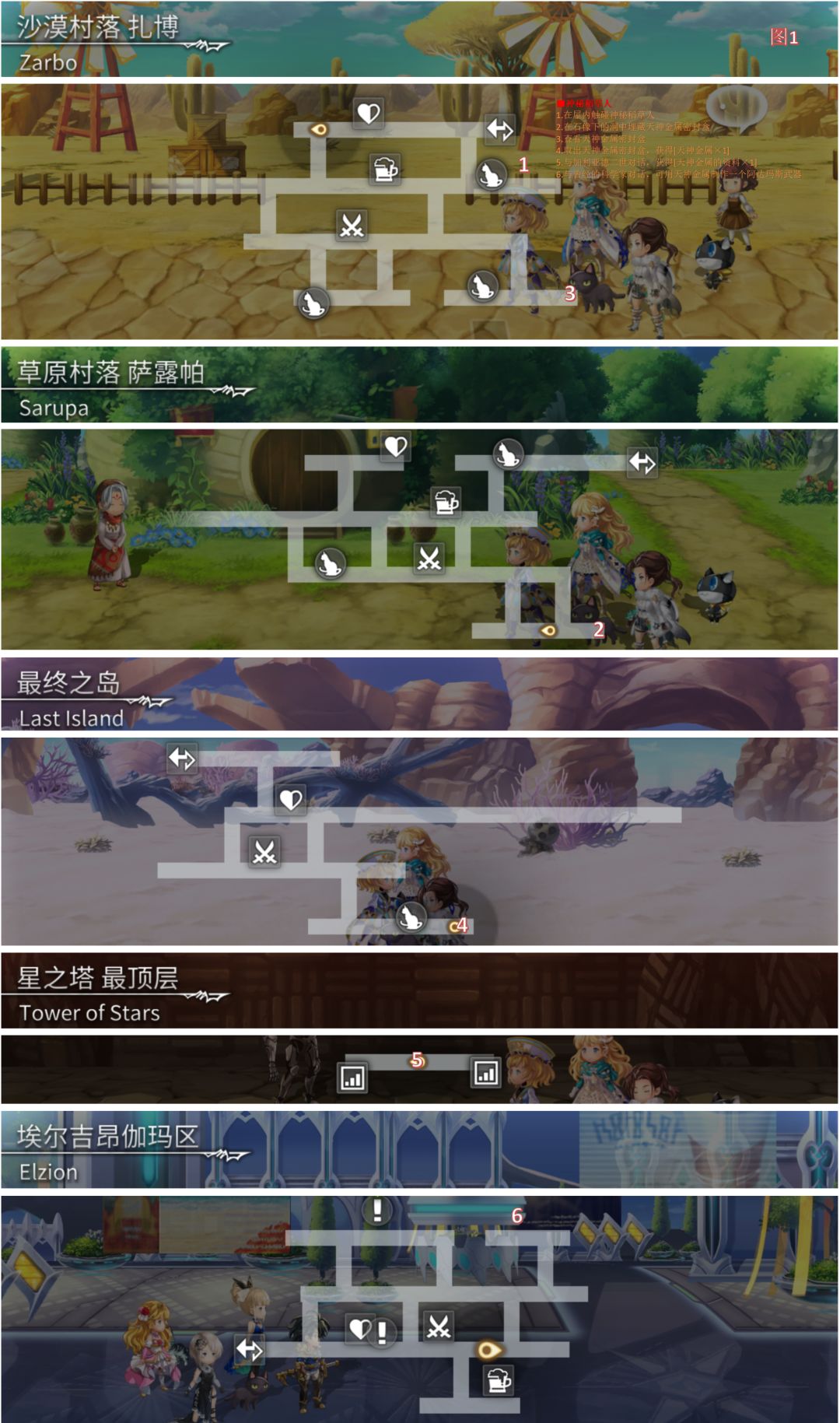 ■地图名称及状态(和平:○ 遇怪:● 可传送抵达:✪)
