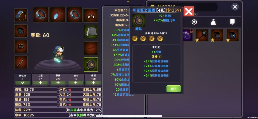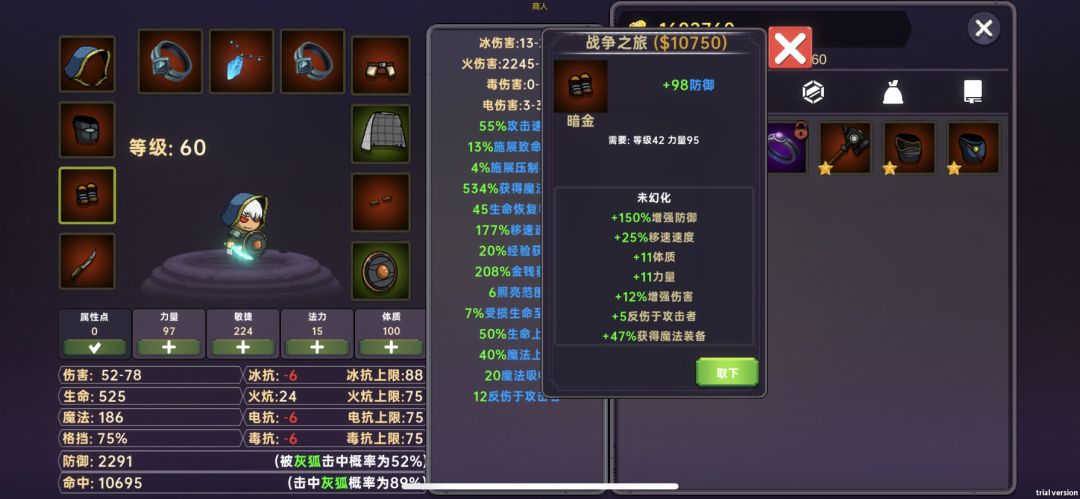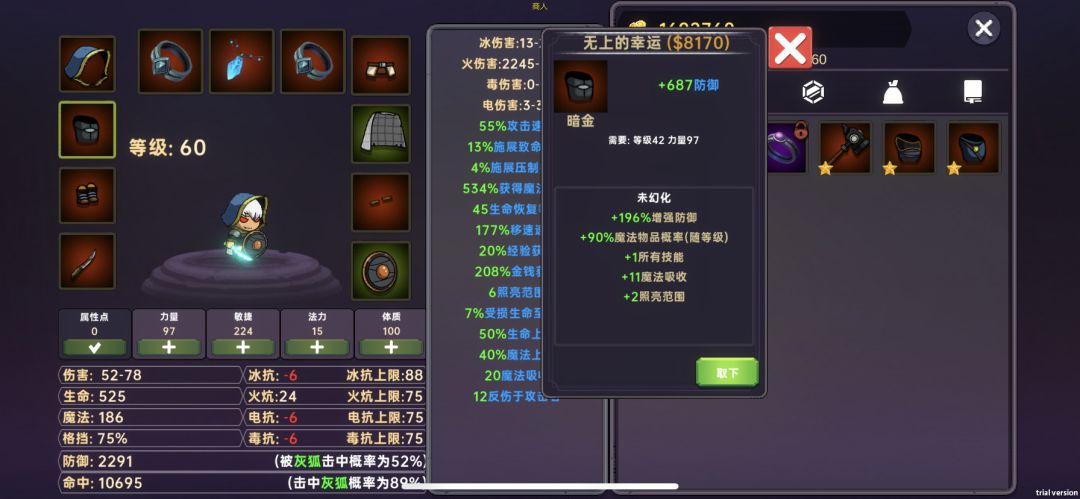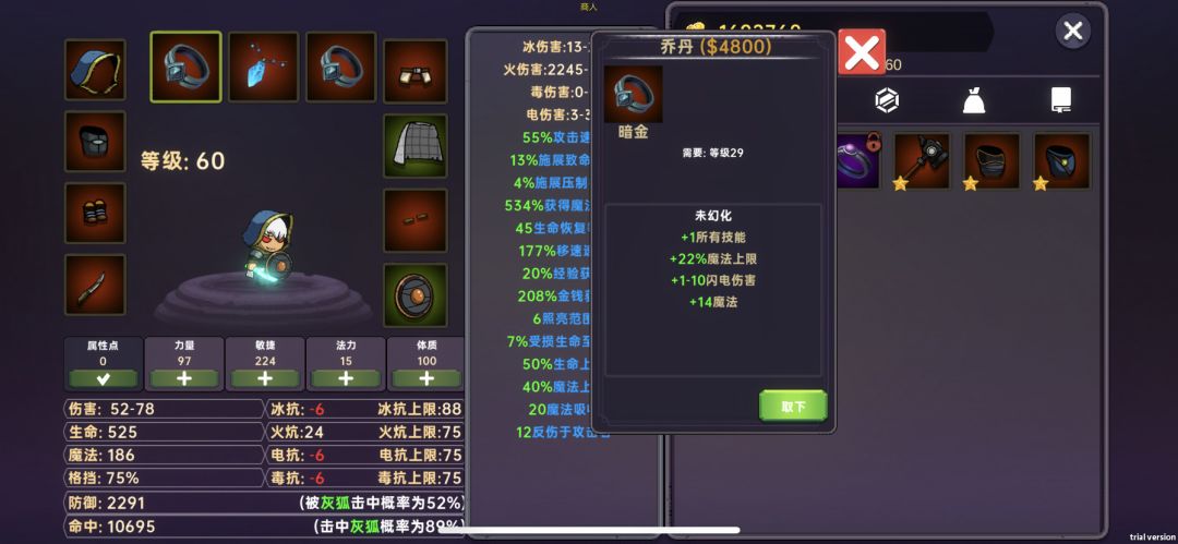 如果要打9-10图,就把戒指项链腰带换成加技能的,也有500多掉率,伤害防御提升一大截,500多血只要不是浪得飞起基本不会暴毙,日常刷图非常丝滑