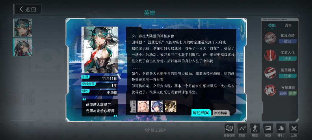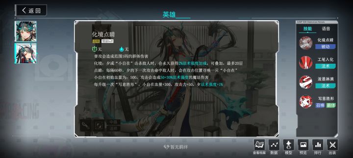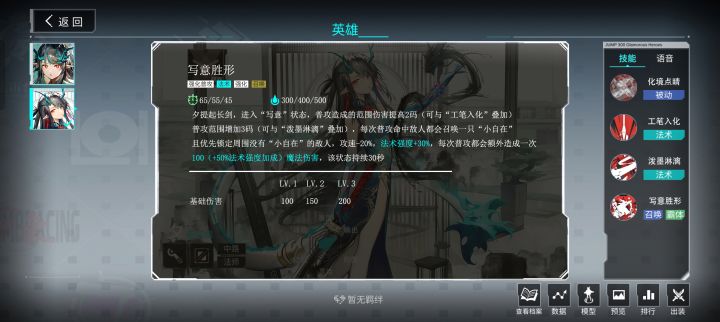 每升级一次“写意胜形”,小自在血量+300,攻击力+50,夕法术强度+1%