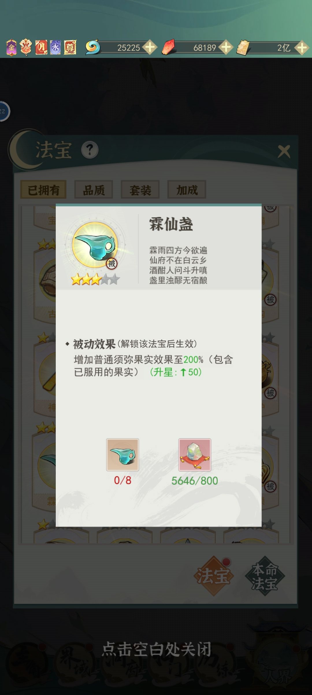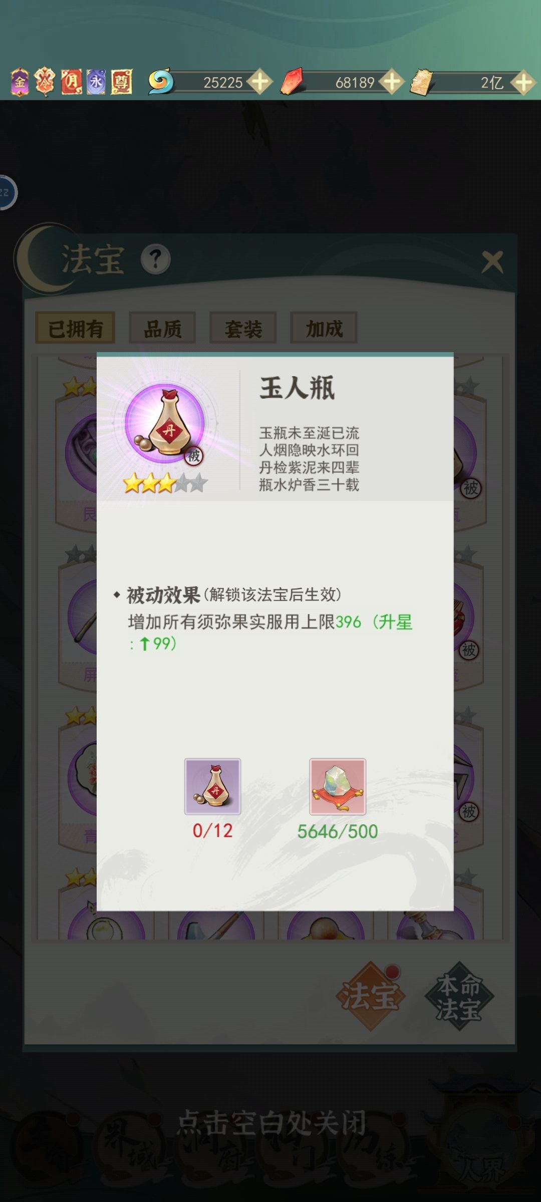 最后,群里有修为计算表,当你吃钥匙能够飞升灵界时(修为破虚),直接飞不要犹豫。吃钥匙的时候记得把好感最高的仙友放进去,再在装备界面把法宝更换成当前增益(今雪对应修为,灵焰对应灵力)。