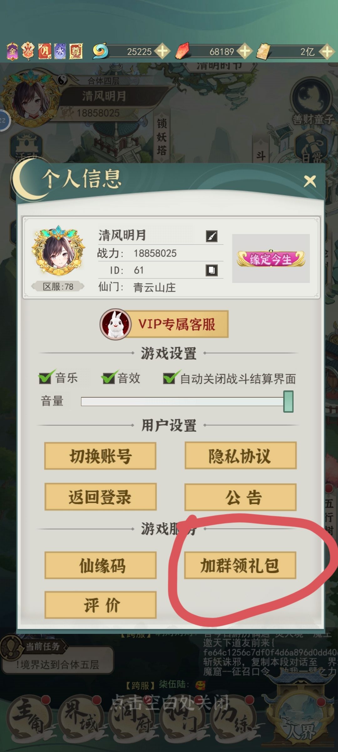 进入游戏后,点击个人头像弹出以上图片,进群然后@QQ管家获取兑换码,兑换码可以批量复制粘贴使用。
