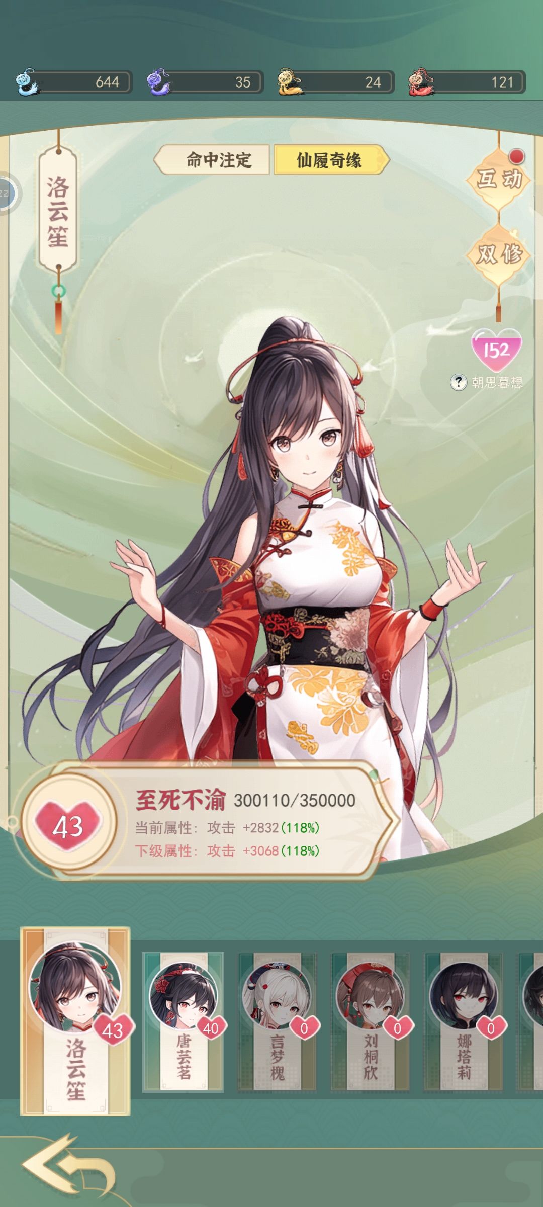 然后是仙友,高等级的仙友挂在今雪堂内效果也非常明显,仙友每个等级提供1%的增益,43级仙友有43%提升,因此前期可以在游商反复刷新把礼物拉满,一般选择攻击和生命的仙友。