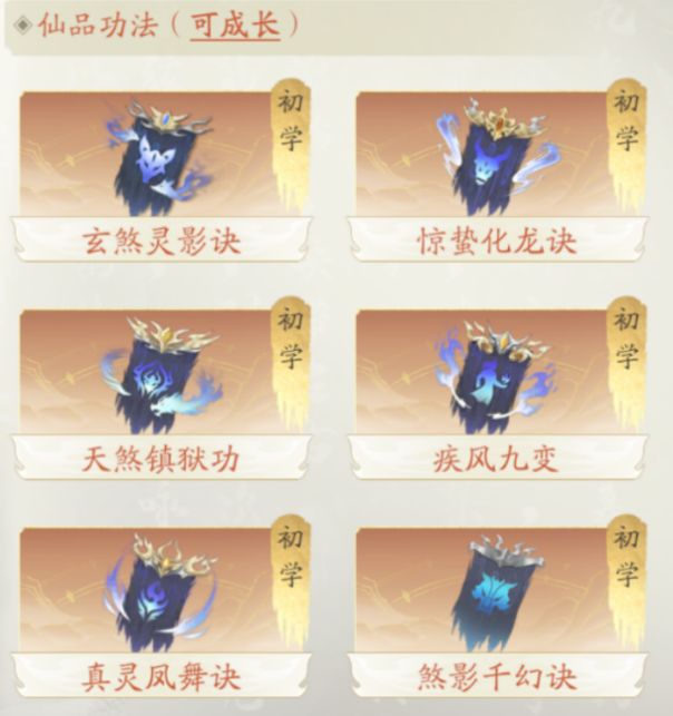 毕业功法即仙品功法,可成长,融合至六重将成长为神品。