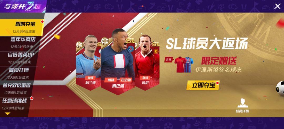 SL哈兰德、姆巴佩、鲁尼限时登场,全SL球员大返场,三大流派球星齐聚,精彩不容错过!更有伊涅斯塔亲笔签名球衣限定赠送,千万不要错过!