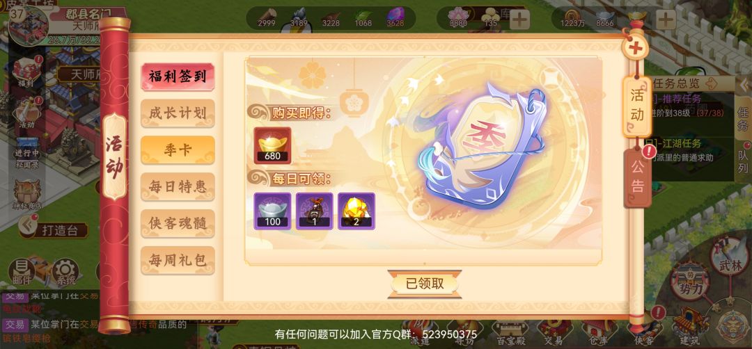 1、先说氪金的东西,本人微氪,氪了200,如果想微氪的玩家,推荐摇钱树和季卡。当然0氪与首充6元党一样能玩,首充龙儿算是平民战神,微氪与零氪的区别就是获取资源、本体、体力会多一些,这款游戏除了刚开始的几天需要花点时间,之后还是很休闲的,所以只要慢慢玩慢慢积累一样能很厉害。