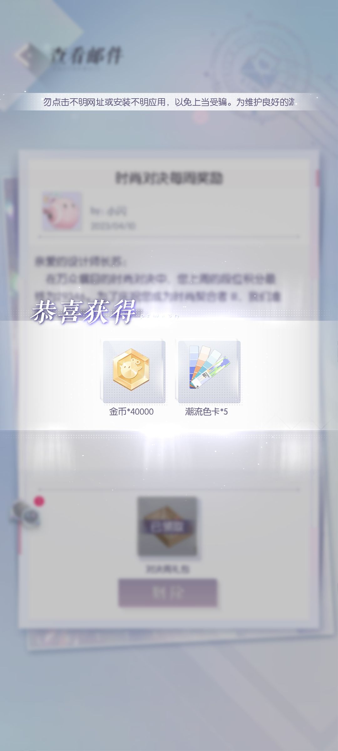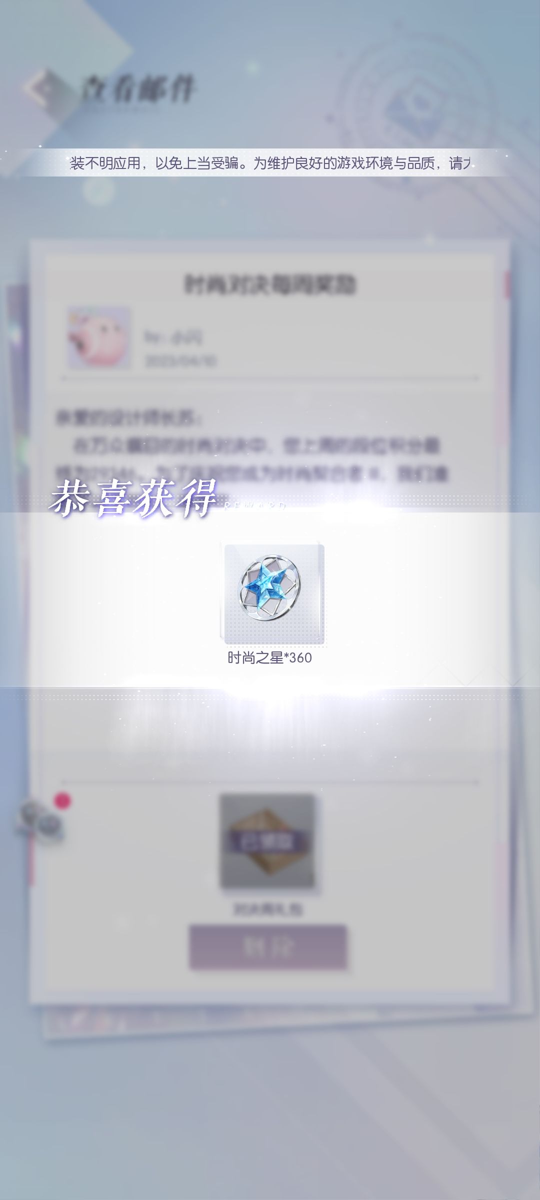 首先段位越高得到的时尚之星越高,一周下来得到的是三种奖励时尚之星,色卡,金币