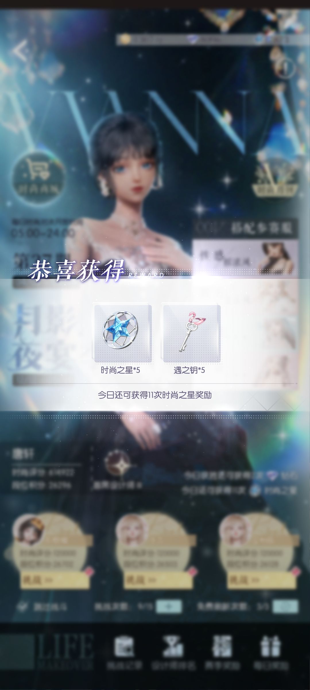 然后每天赢的前三次每一次都会得到钻石5,时尚之星5,钥匙5