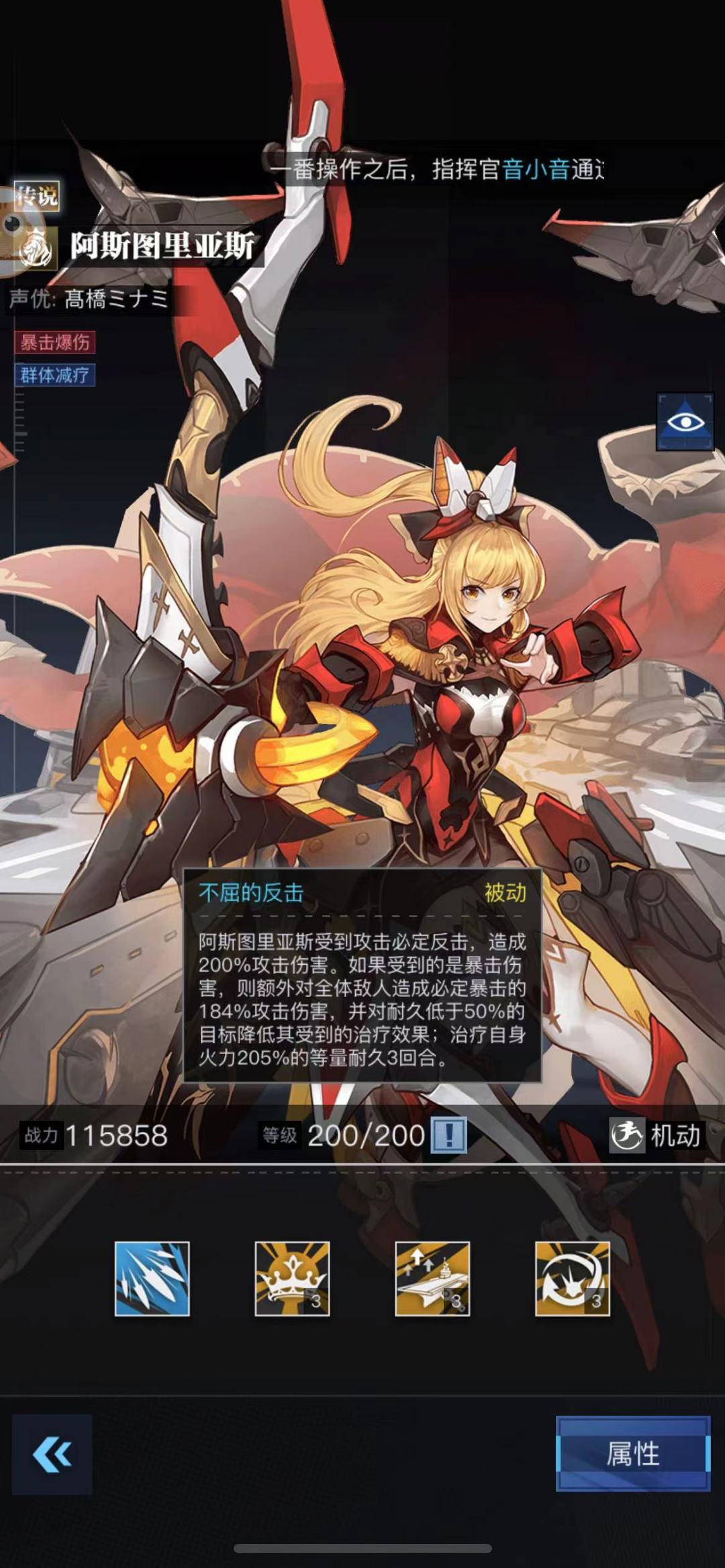 胜利号(拉满,独特的主动技能让她特别克制敌方队伍的高火力战姬以及多阿斯多喷火阵容)