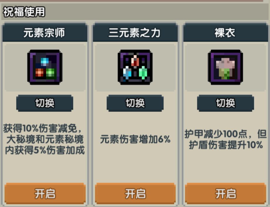 大多数玩家建议选择一二阶混搭,即如图,中间两个位置用一阶外装的元穿主属性